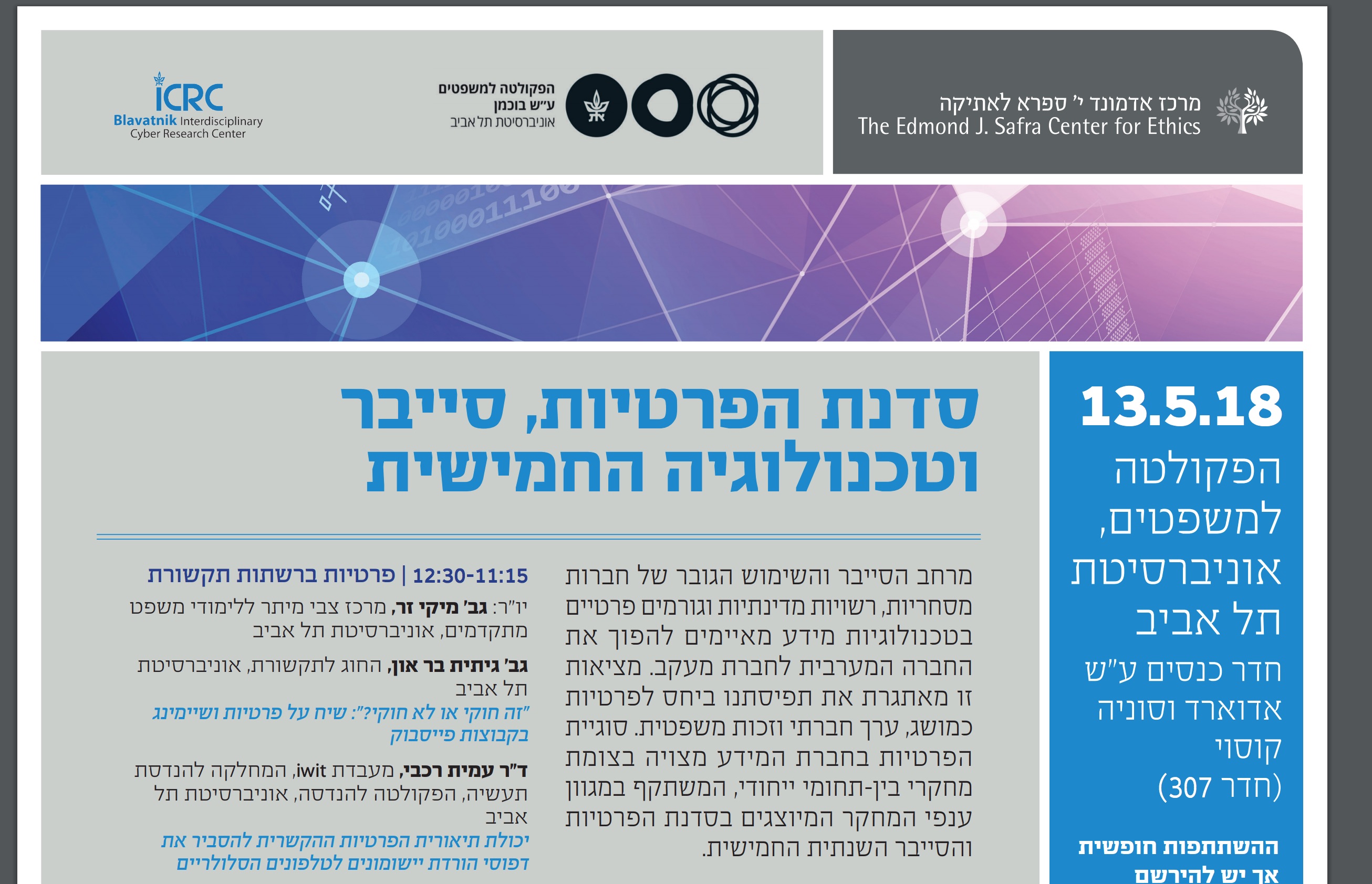 Our presentation at the Fifth Privacy, Cyber-security, and Technology in Tel Aviv University