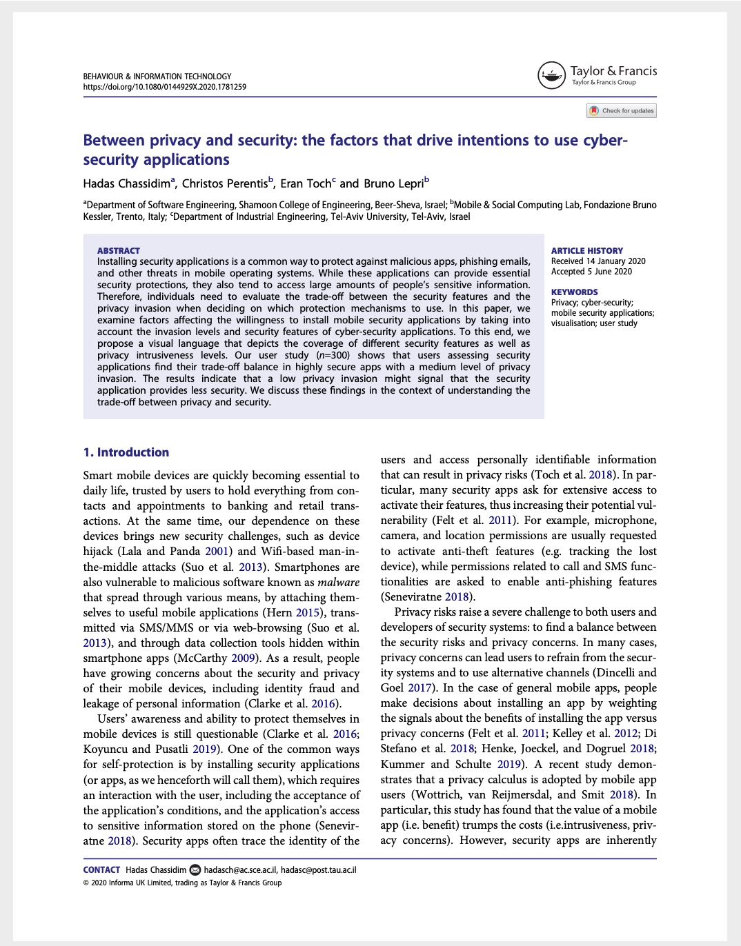 Just published — Between privacy and security: the factors that drive intentions to use cyber-security applications