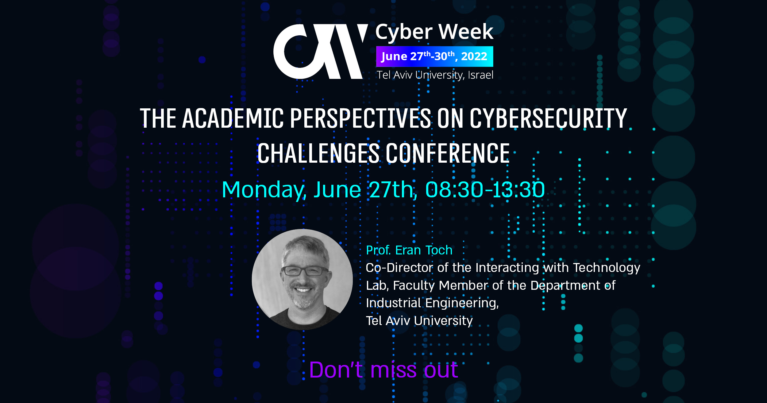 Eran will be speaking at Cyber Week on June 27th at Tel Aviv University – one of the largest, international cybersecurity conferences in the world. I will be speaking at the Academic Perspectives on Cybersecurity Challenges session on: The Science of Cybersecurity in
