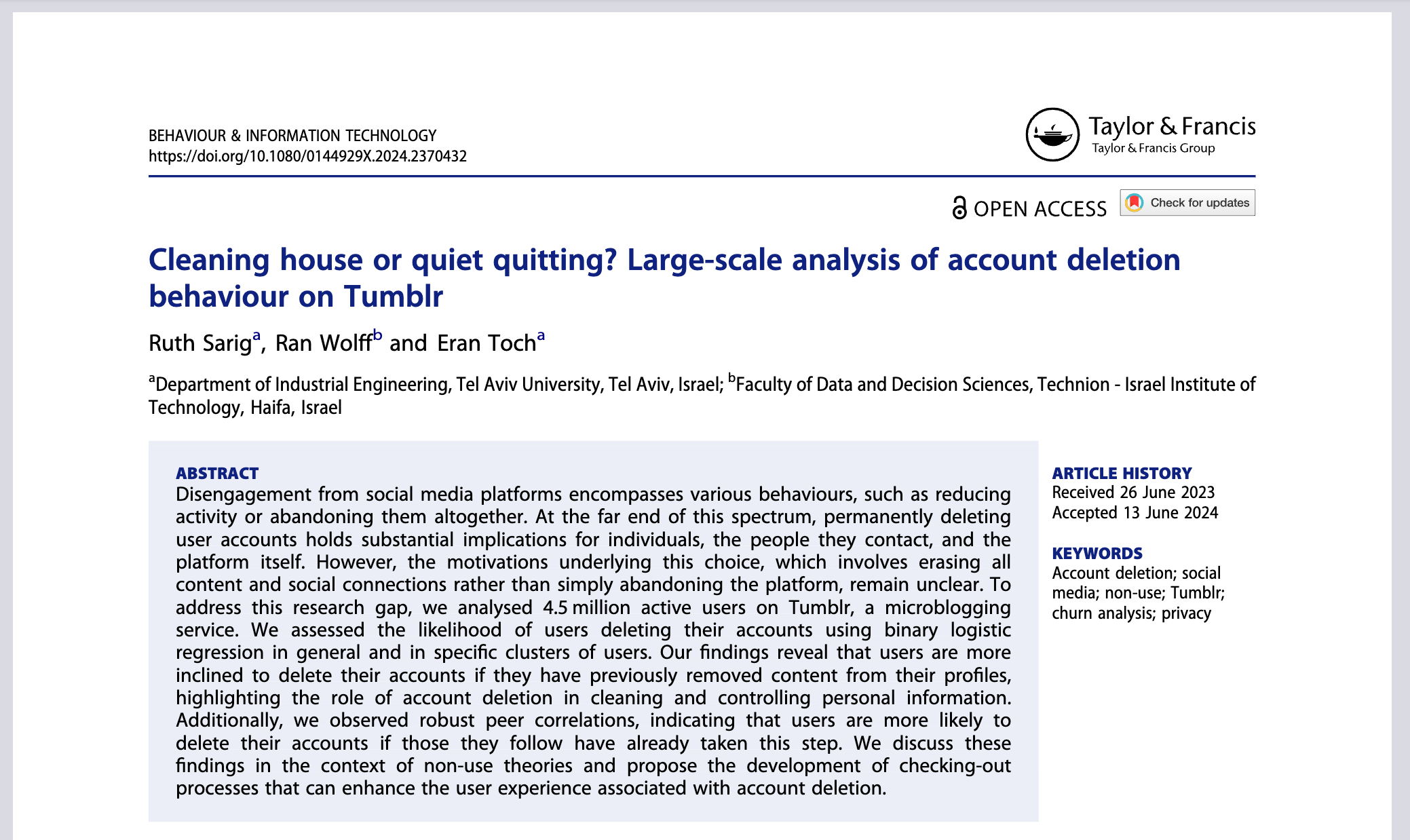 Published paper: Cleaning house or quiet quitting? Large-scale analysis of account deletion behaviour on Tumblr